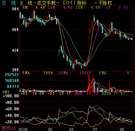 2.ADX在高于50的地方向下反折时,应小心股价随时有反转的可能。