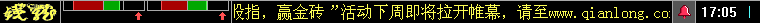 ![]() 沪、深的红绿军: 买气(红)、卖气(绿)的强弱表示。 红色箭头表示现在正处于领先指标红色的区域,绿色箭头表示现在正处于领先指标绿色的区域。 如果箭头向上,表示领先指标与之同色的柱状线正在变长;如果箭头向下,表示领先指标与之同色的柱状线正在变短。 跑马灯: 证券公司或合作资讯厂商可以利用跑马灯来发布消息,文字会以滚动的形式播出。 警示灯: 当有符合您所设置的警示条件,警示灯就会闪烁,单击警示灯即可查看具体信息。 信号接收小棍子: 小棍子在旋转,就说明有新的行情数据到达;小棍子不动,则说明没有行情数据。 |